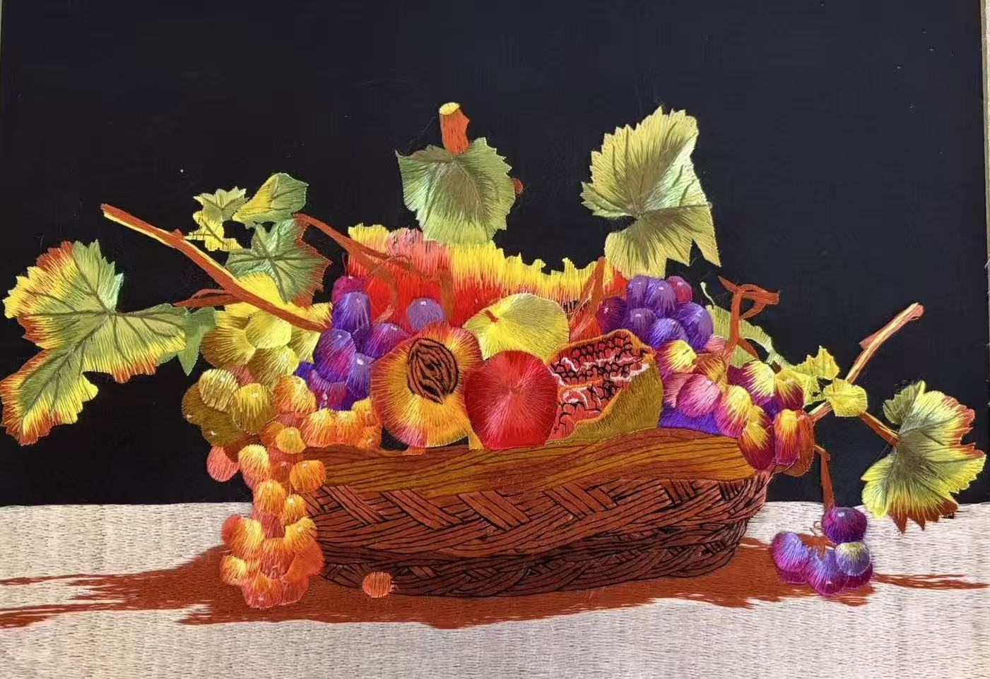 無形文化遺産「蘇州刺繍」掛け軸|実籠の豊穣・東洋の雅