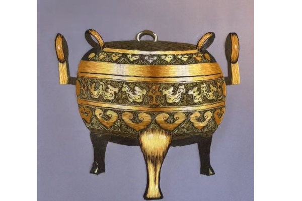 【蘇州刺繍名品|古代青銅鼎をモチーフにした掛け軸】
