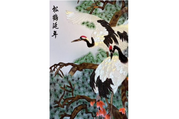 蘇州伝統刺繍掛け軸「丹頂鶴の舞」 和モダンインテリア 芸術的ギフト