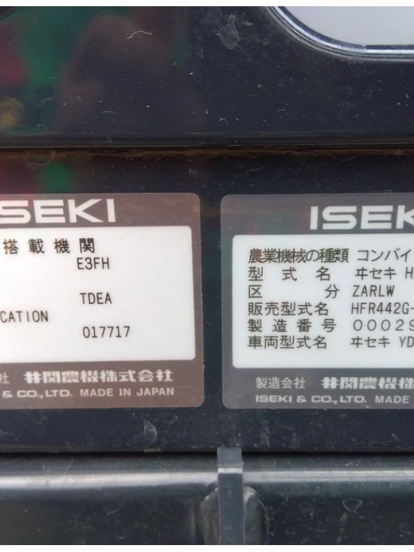 イセキ 中古コンバイン(HFR442G-ZARLW)です。